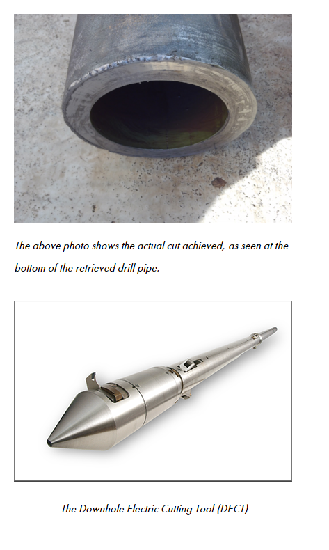 The PowerTrac 318 and DECT002 tool string was rigged up and run in hole. Tractoring was required for a distance of 1548 metres to get the cutter to the selected cutting depth. Once on depth, the 5 1/2’’ HWDP was cut successfully within 5 minutes, and the toolstring pulled out of hole. This entire e-line operation was completed in under 12 hours. With the toolstring out of the hole the drill string was then freed and retrieved from the well and a sidetrack operation executed.