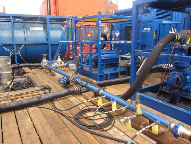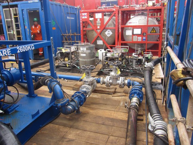 A pigging programme to remove all wax and hydrocarbons from the line was actioned. As the line was not in production, the pipeline had to be pigged with chemically treated filtered seawater, via a temporary pumping and telemetry standard metering package provided by ourselves.