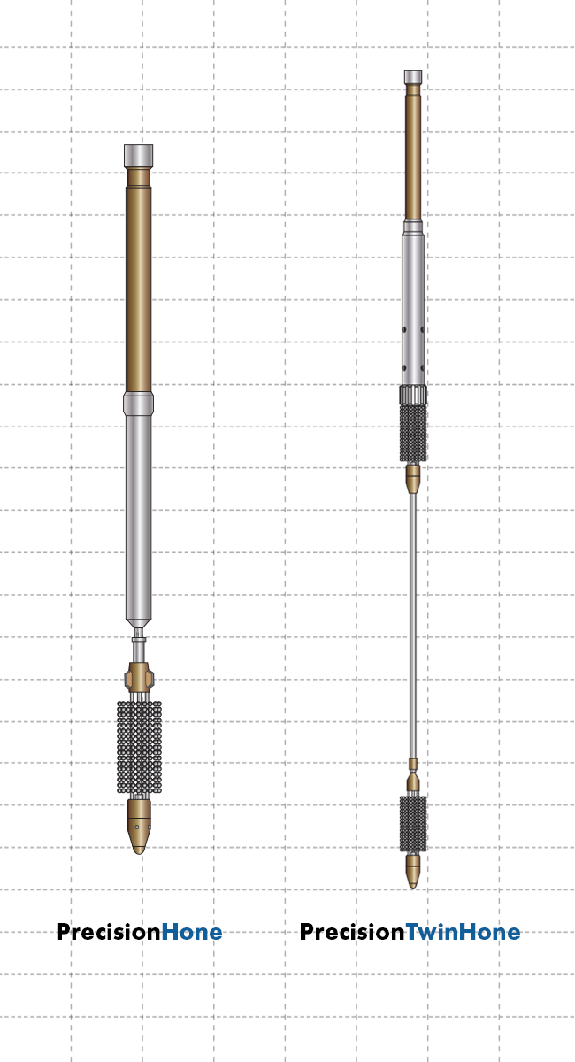 The PrecisionHone and the PrecisionTwinHone are used to hone seal bores by removing deposits (scale, rust) and minor protruding obstructions that affect the sealing integrity of completion components, e.g. downhole safety valve. They are run in combination with PowerTrac® for anchoring and conveyance, coupled with a hydraulic rotation adapter to generate the required rotational force.