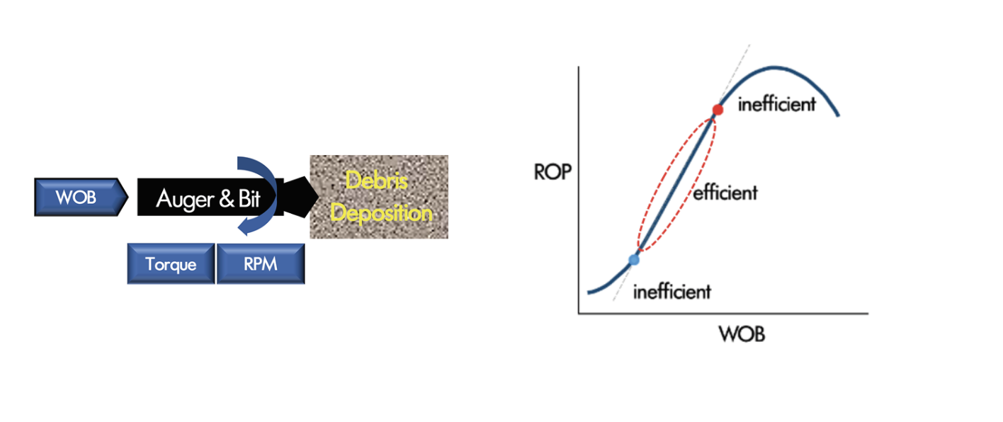Critical to optimizing rotational based wellbore cleanout operations is the ability to provide the required parameters of torque, weight on bit (WOB) and RPM combined with a specifically designed bit and auger system, in turn delivering optimized rate of penetration (ROP) throughout the task at hand.